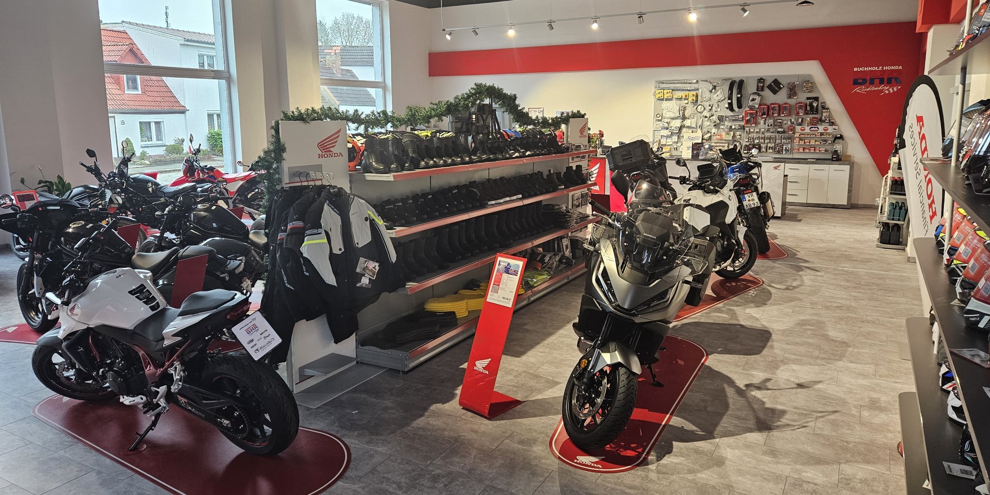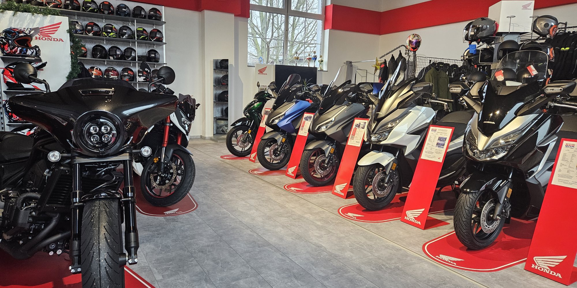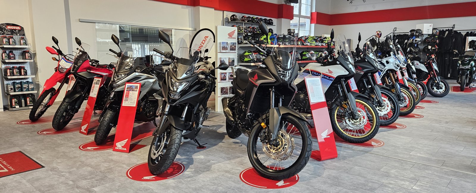 Am 3. September 2022 haben wir unser neues Motorradhaus in Richtenberg eröffnet. Auf 220m² Verkaufsfläche können wir die HONDA Modellpalette jetzt noch besser präsentieren.