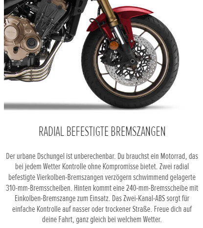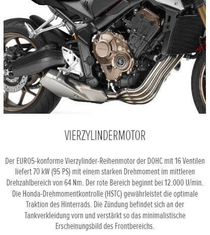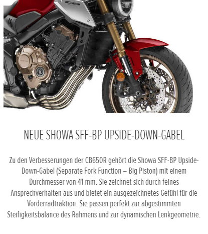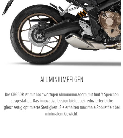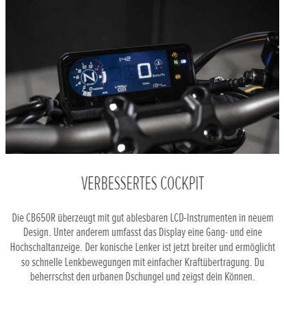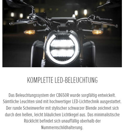 Folgendes Zubehör ist an der CB 650 R montiert:
