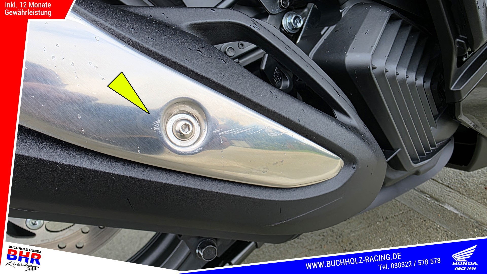 An der Verkleidung oben links ist eine kleine Schramme und am Auspuffschutz sind kleine Kratzer (siehe Bilder)