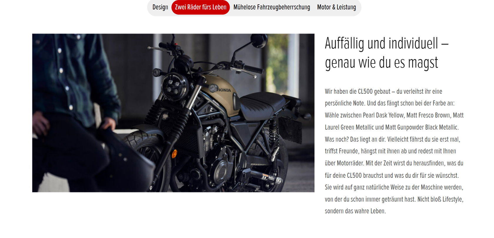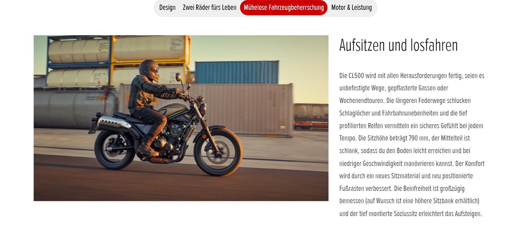 Mit der CL72 kam 1962 unser erster Straßen-Scrambler auf den Markt. Wir dachten uns, es sei an der Zeit, eine neue Generation auf den Markt zu bringen, die für die Straßen von heute gemacht ist. Die CL500 strotzt nur so vor Stil und Details, wie sie nur eine lange Geschichte hervorbringen kann. Der kräftige, A2-konforme Zweizylindermotor verrichtet seinen Dienst in einem robusten und kompakten Chassis. Die Maschine lädt förmlich dazu ein, gefahren und nach eigenen Vorlieben gestaltet zu werden. Genau wie das Original.