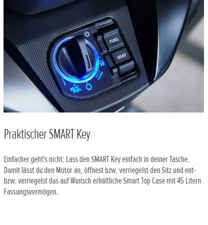 Serienmäßig mit dazu gehört ein farblich auf den Forza abgestimmtes 45L Smart Top Case mit Rückenpolster.
