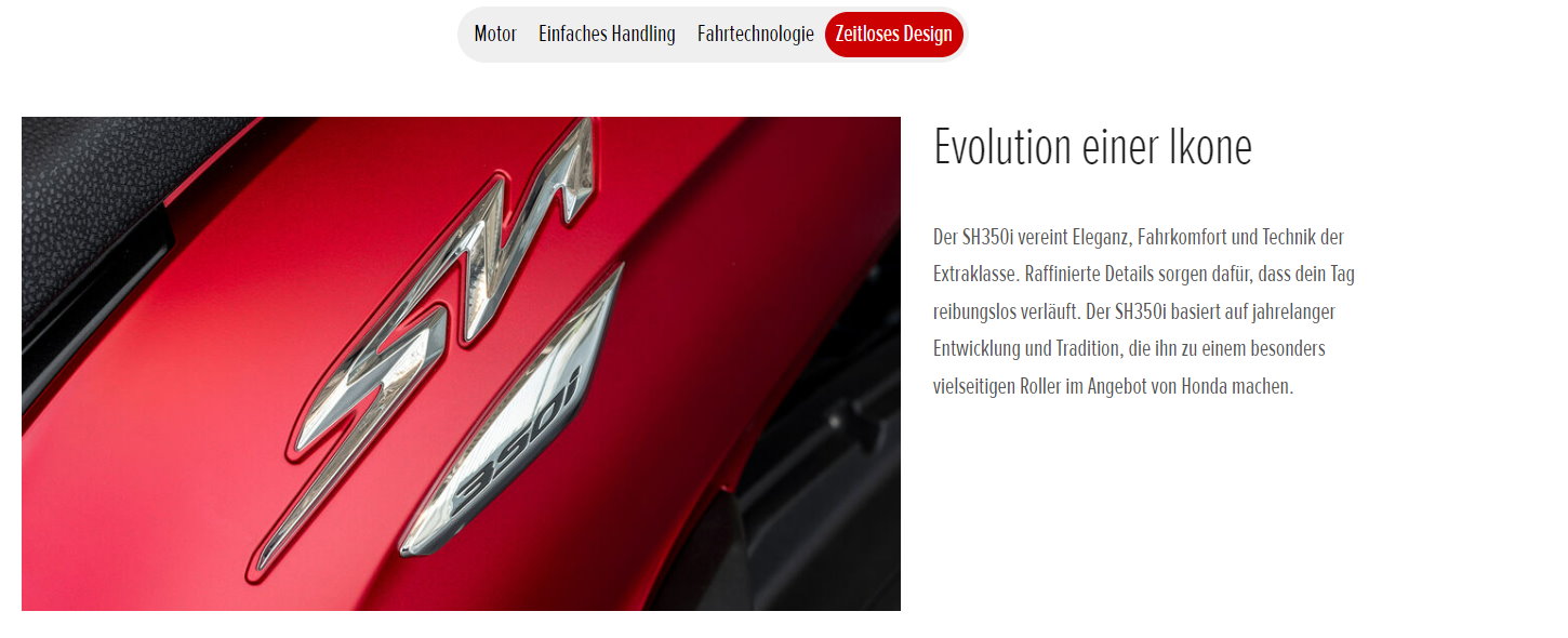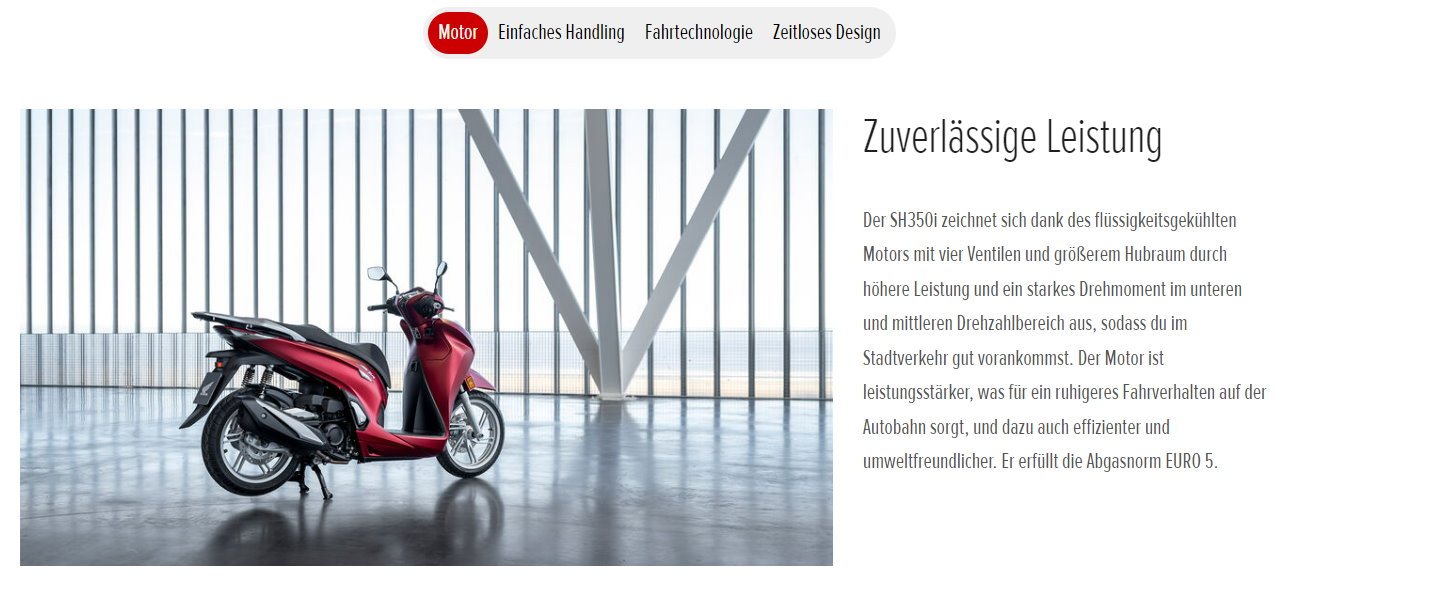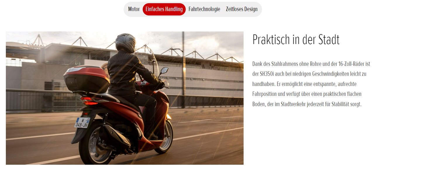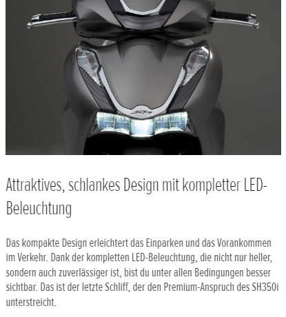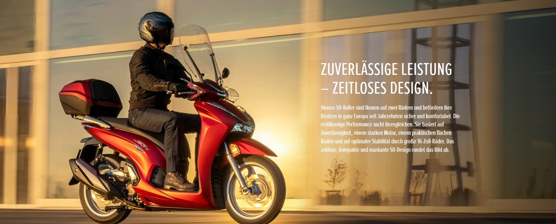 Unsere SH-Roller sind Ikonen auf zwei Rädern und befördern ihre Besitzer in ganz Europa seit Jahrzehnten sicher und komfortabel. Die erstklassige Performance sucht ihresgleichen. Sie basiert auf Zuverlässigkeit, einem starken Motor, einem praktischen flachen Boden und auf optimaler Stabilität durch große 16-Zoll-Räder. Das zeitlose, kompakte und markante SH-Design rundet das Bild ab.