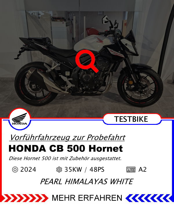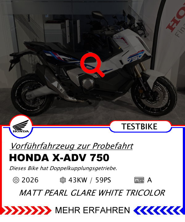 Ein Motorrad kauft man mit dem ganzen Körper, nicht nur mit dem Kopf. Machen Sie eine Probefahrt und genießen Sie diese Fahrt mit Haut und Haar. Entscheiden Sie sich erst nach der Fahrt, dann aber überzeugt und begeistert. Vereinbaren Sie einen Termin für eine Probefahrt !