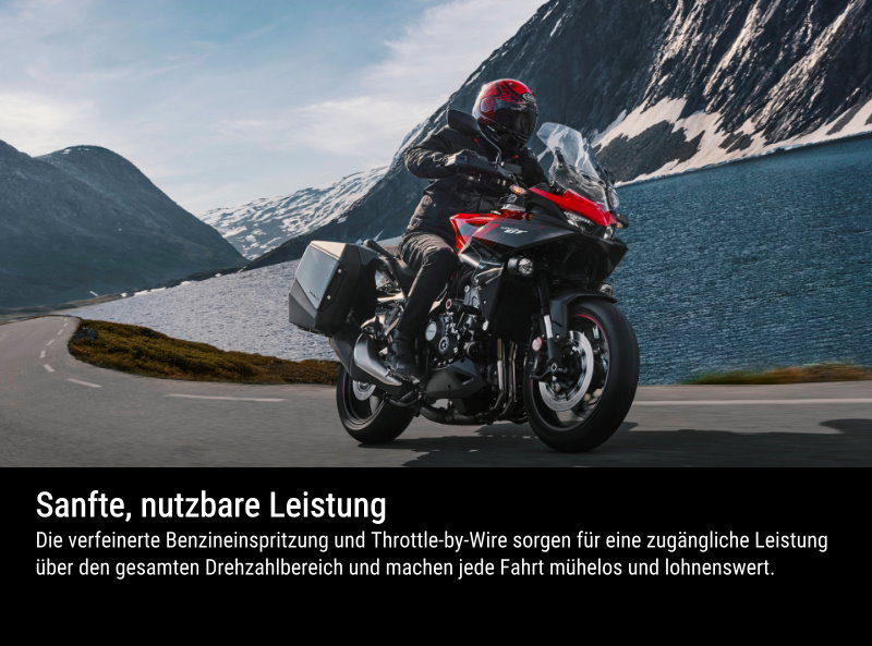 Die verfeinerte Benzineinspritzung und Throttle-by-Wire sorgen für eine zugängliche Leistung über den gesamten Drehzahlbereich und machen jede Fahrt mühelos und lohnenswert.
