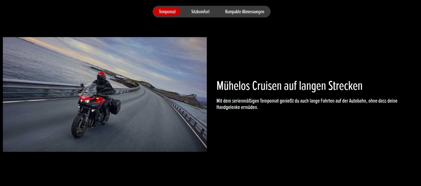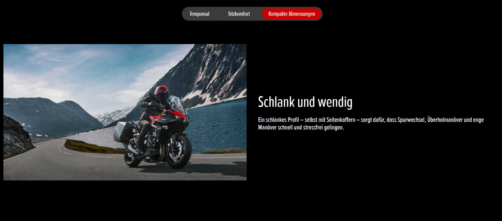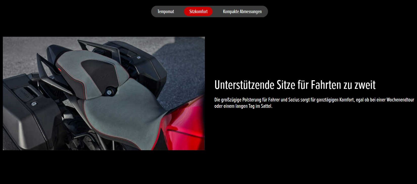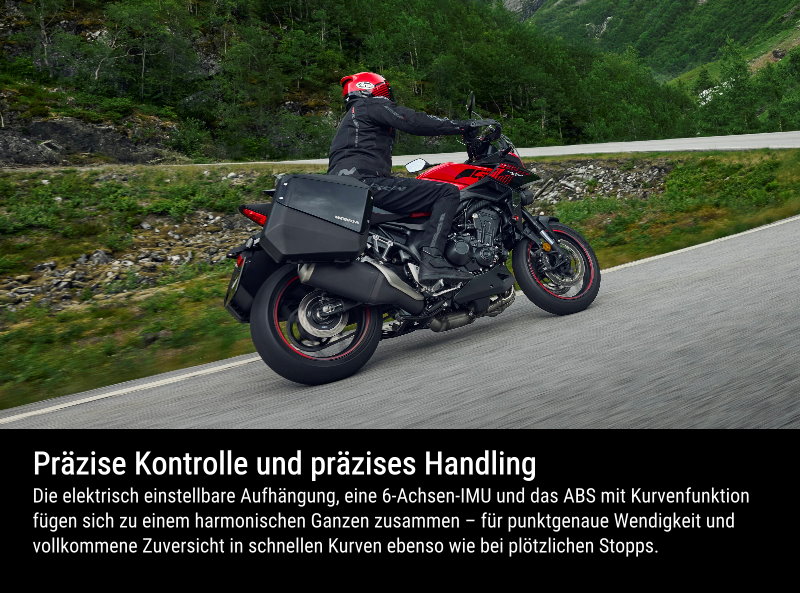 Die elektrisch einstellbare Aufhängung, eine 6-Achsen-IMU und das ABS mit Kurvenfunktion fügen sich zu einem harmonischen Ganzen zusammen – für punktgenaue Wendigkeit und vollkommene Zuversicht in schnellen Kurven ebenso wie bei plötzlichen Stopps.