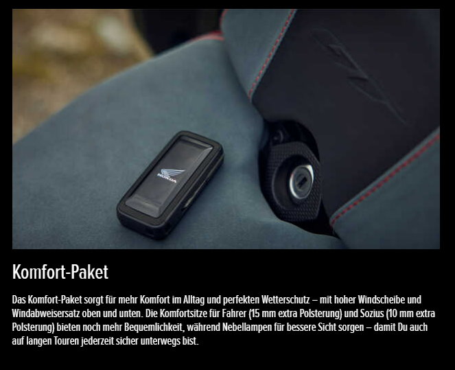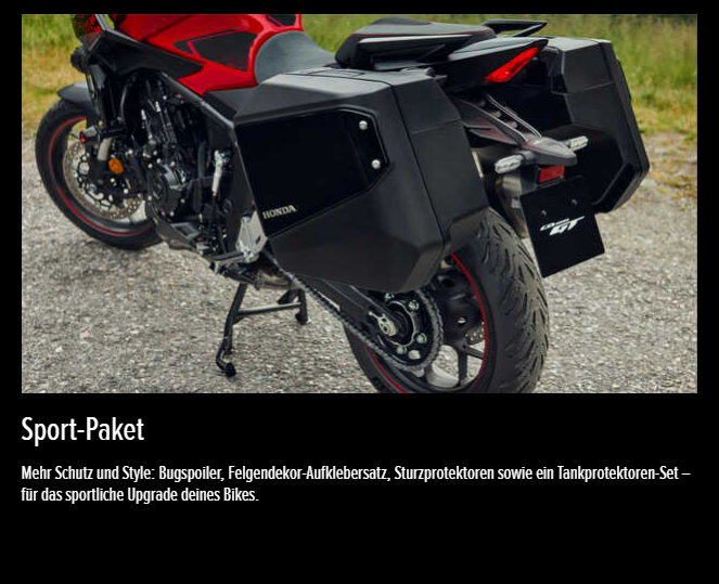 Die überwältigende Resonanz bestätigte das enorme Potenzial der 1000er Hornet-Plattform. So wertet ab 2026 die brandneue CB1000GT die Modellfamilie auf. Das Entwicklungs-Konzept war umschrieben mit „High-Performance-Tourer: Schneller. Mehr Reichweite. Mehr Komfort.“ Das Ergebnis ist eine souveräne Vierzylinder-Maschine, die Sport und Adrenalin mit praxisgerechter Langstreckentauglichkeit für Fahrer und Sozius verbindet. Abgerundet wird die Einführung der CB1000F auf dem europäischen Markt durch eine Reihe von Original-Zubehörteilen von Honda, die Stil, Leistung und Komfort verbessern. Entweder in Form von sorgfältig zusammengestellten Paketen (Sport, Komfort oder Reise) oder einzeln erhältlich, kann die CB1000F genau auf Ihre Bedürfnisse zugeschnitten werden.