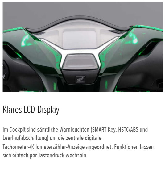 Wir nennen den SH125i unsere Zeitmaschine, weil du mit ihm in der Stadt Zeit gewinnst. Elegant und kompakt – perfekt für belebte Straßen und einfaches Parken. Die 16-Zoll-Räder vorn und hinten sorgen für Stabilität und der flache Boden, der großzügige Stauraum unter dem Sitz und die niedrigen Sitzhöhe von 799 mm für Komfort. Freu dich auf die optimale Leistung und Kraftstoffeffizienz des eSP+ Motors mit vier Ventilen und HSTC. Hol dir unterwegs Zeit zurück. Entscheide dich für den SH125i.