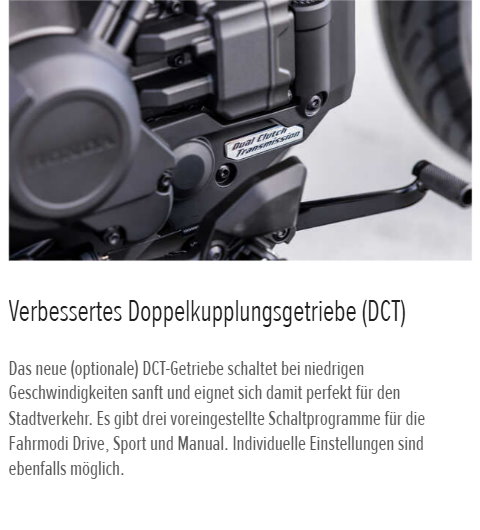 Der drehfreudige, charakteristische Zweizylindermotor verfügt über eine elektronisch gesteuerte Drosselklappe, 3 Fahrmodi, HSTC-Traktionskontrolle und Wheelie-Control. Der Tempomat gehört zur Standardausstattung und das einzigartige Doppelkupplungsgetriebe (DCT) auch.