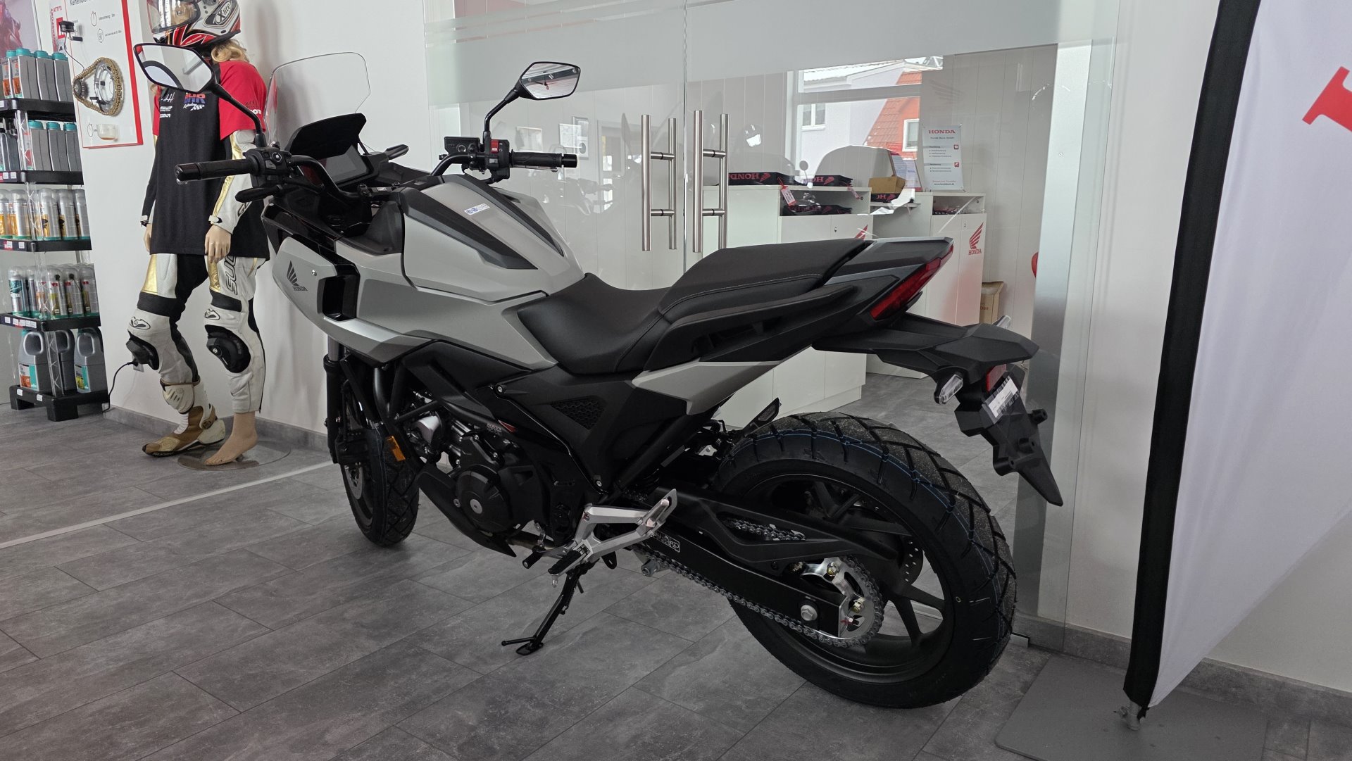 Diese NC 750 X mit Schaltgetriebe hat eine Tageszulassung im Februar 2026 erhalten und 0 km Laufleistung.