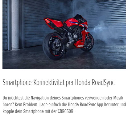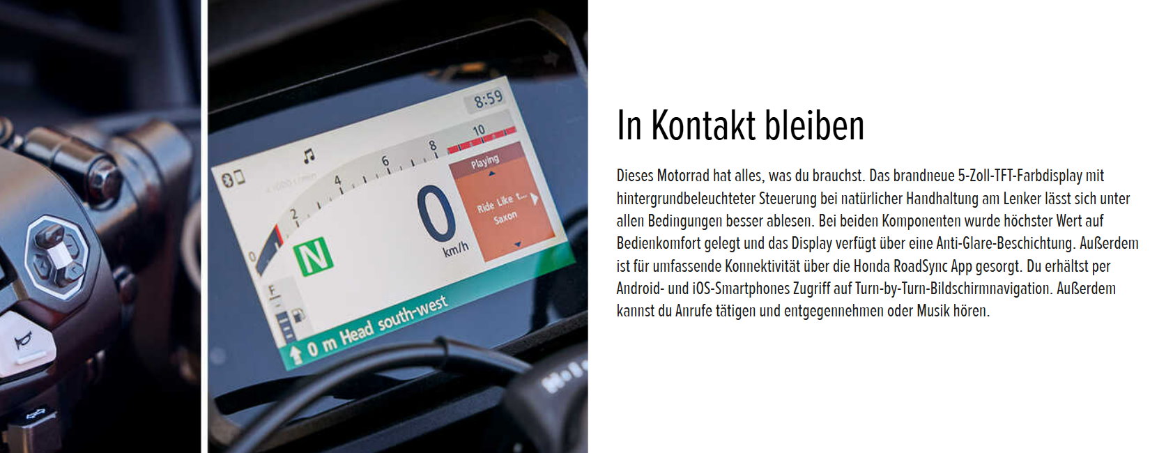 Honda RoadSync Konnektivität und wird über einen 4-Wege-Schalter am Lenker bedient.