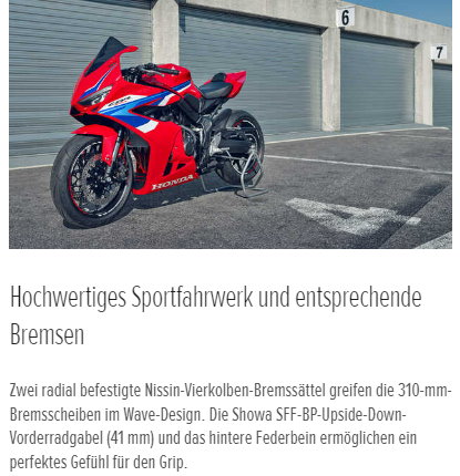 Das zuverlässige Triebwerk leistet 95 PS/70kW, eine A2-Version mit 48 PS ist ebenfalls verfügbar. Das Fahrwerk glänzt mit stabiler Showa SFF-BP Upside-Down-Gabel und Doppelscheibenbremse mit Radial-Vierkolben-Sätteln, die HSTC-Traktionskontrolle schützt vor unliebsamen Überraschungen bei engagierter Fahrweise.